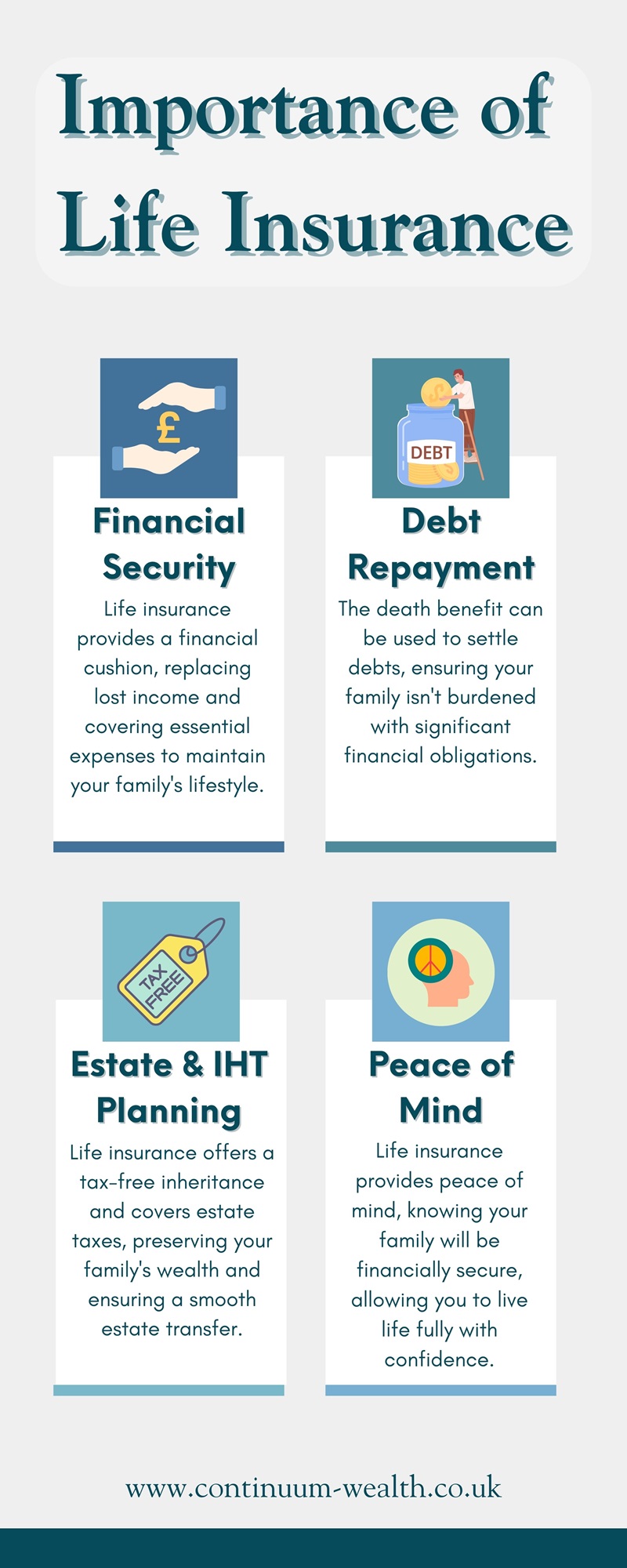 Life insurance can be an effective tool for estate planning and inheritance tax planning (IHT). The death benefit can provide a tax-free inheritance to your heirs, helping to preserve your family's wealth. Additionally, it can cover estate taxes, legal fees, and other related costs, ensuring that your estate is passed on smoothly and without financial strain. This aspect of life insurance highlights its importance in safeguarding your family's financial future and legacy.