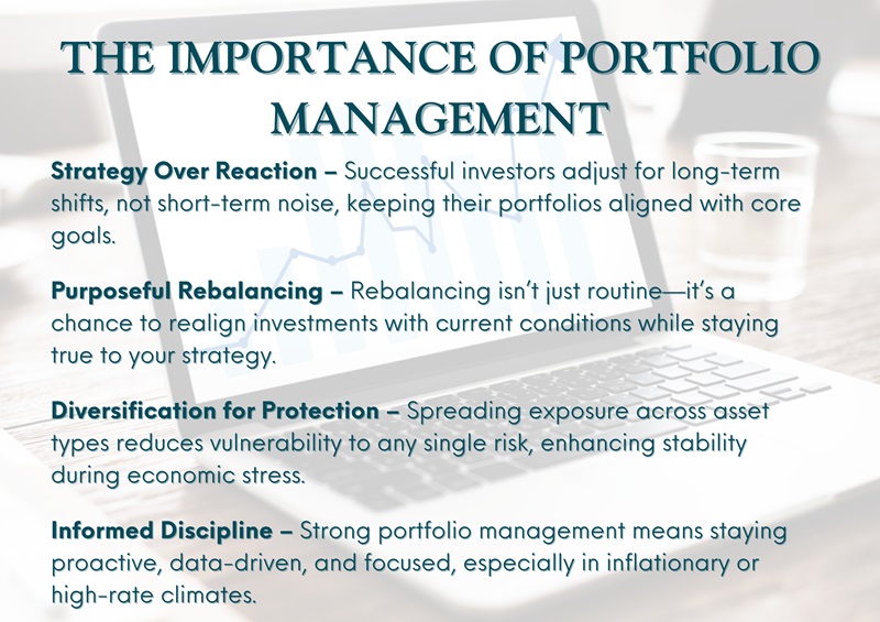 Good portfolio management is proactive, not reactive. It’s grounded in data, structured thinking, and a clear understanding of the investor’s objectives. In inflationary, high-rate conditions, portfolios managed with care tend to outperform those built on instinct or outdated assumptions.