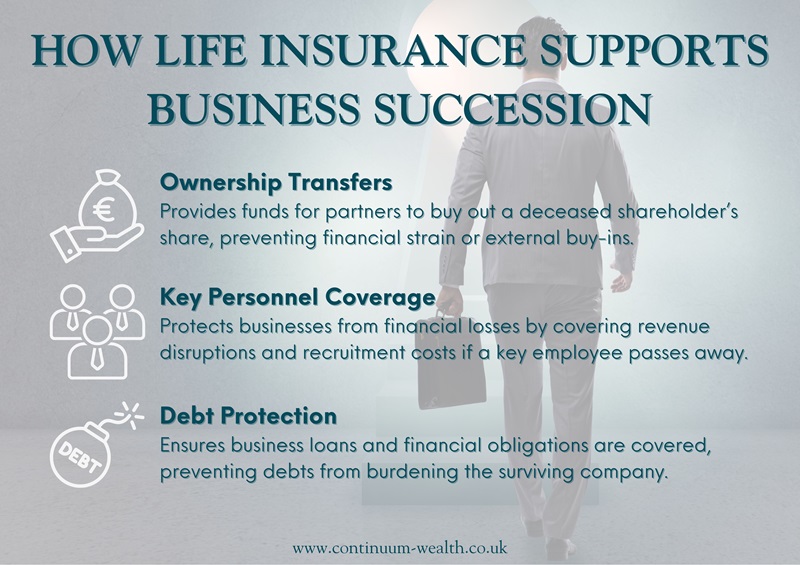 Business succession planning involves preparing for ownership transitions, leadership changes, and financial stability in case of unforeseen events. Life insurance plays a pivotal role in ensuring that: