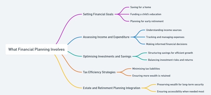 A sound financial plan provides the framework for estate planning, retirement strategies, investment decisions, and wealth management. Each of these areas influences the other—inheritance tax planning, for instance, cannot be done in isolation without considering how assets are structured within a broader financial plan.