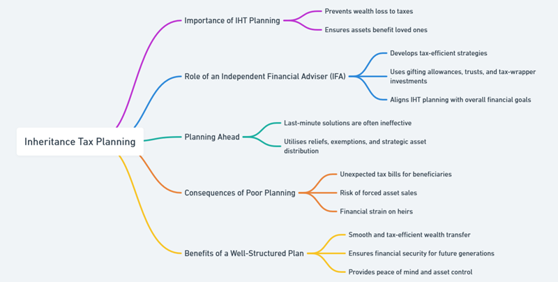 Planning ahead is key—last-minute solutions are often ineffective. By working with an IFA, individuals can take advantage of reliefs, exemptions, and tax-efficient asset distribution, ensuring that their wealth is transferred with minimal tax burden. Inheritance tax planning is not just about reducing tax liabilities; it’s about ensuring financial security for future generations while maintaining control over personal assets.