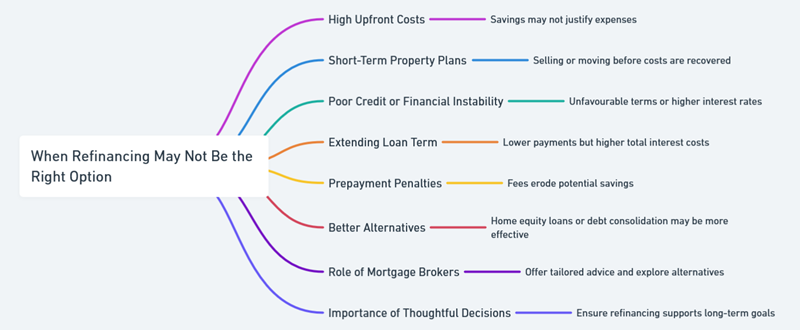 Deciding against refinancing doesn’t mean giving up on improving your financial position—it simply means finding the most suitable path forward. A mortgage broker can provide an honest assessment of whether refinancing is right for you. They consider factors like costs, savings potential, and your long-term goals, ensuring that any decision supports your financial well-being. By exploring alternatives and offering tailored advice, brokers empower homeowners to make choices that truly align with their circumstances.