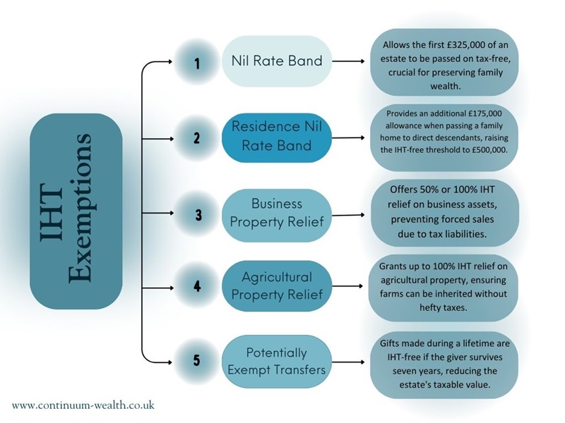 Inheritance Tax (IHT) planning is essential for anyone looking to preserve and enhance their financial legacy in the UK. Through this blog, we've explored a variety of IHT exemptions and the significant role they can play in reducing the tax burden on an estate. From the Nil Rate Band and Residence Nil Rate Band to Business Property Relief and Agricultural Property Relief, understanding and applying these exemptions can lead to substantial tax savings and more of your estate going to your chosen beneficiaries.